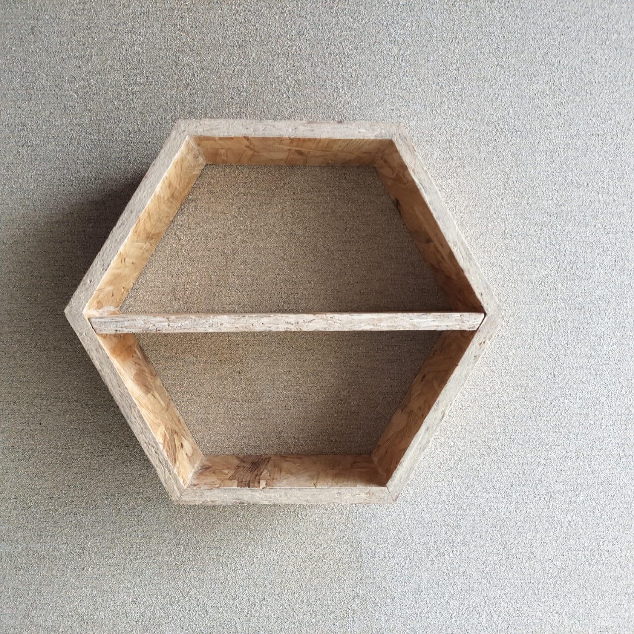 ハニカム(六角形)デザインとOSBボードのナチュラルな木の風合いが、おしゃれな印象を与えます。お部屋の模様替えやインテリアの一部に取り入れるのにおすすめです。